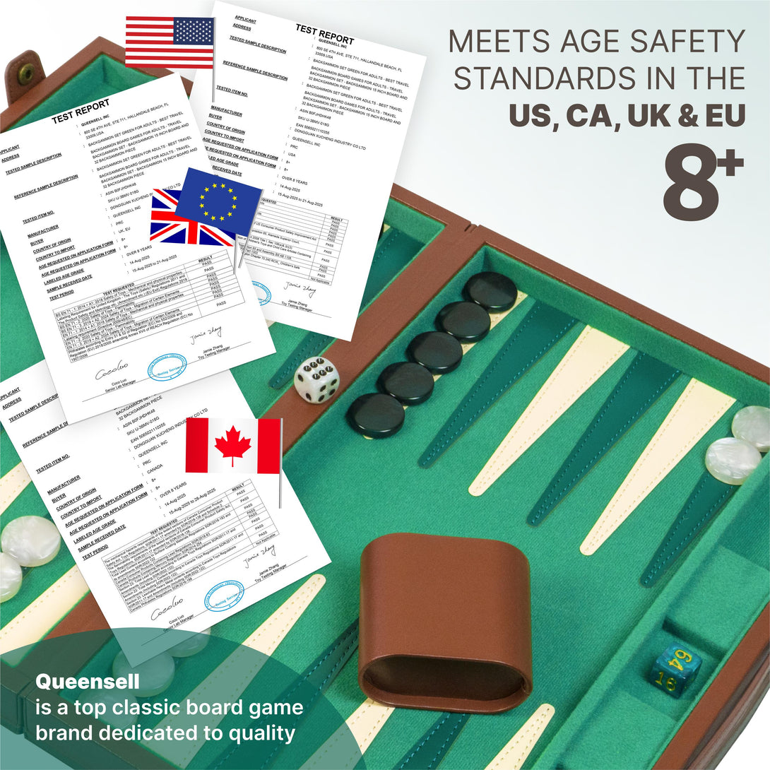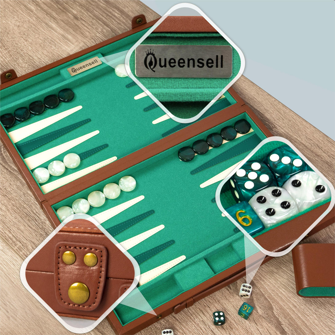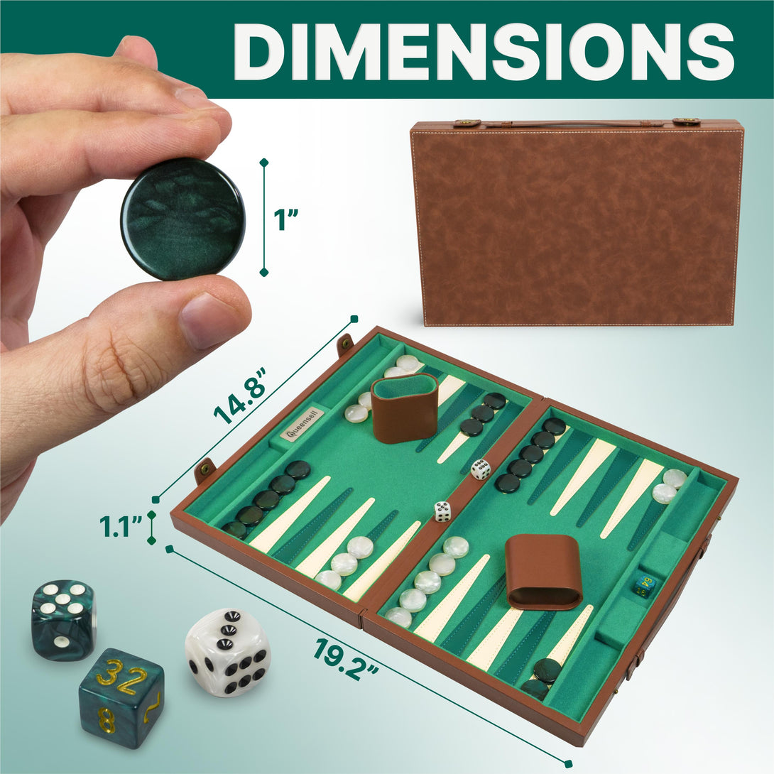 Backgammon Sets for Adults - 15-Inch Green PU Leather